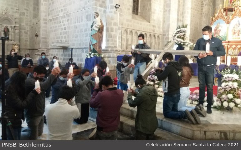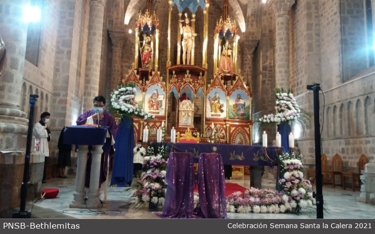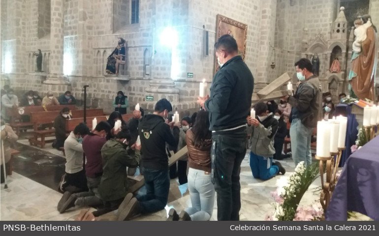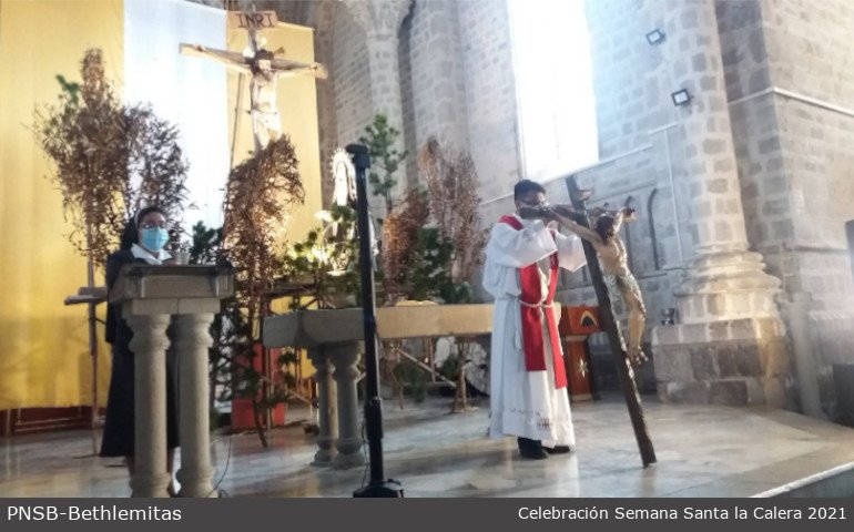 La comunidad de Hermanas Bethlemitas de la Calera: Hnas. Mery Arias, Bertha Isabel Ortega, Blanca Guamán y la Novicia Betsy Yandún, trabajan fraternalmente en coordinación con el párroco de “La Parroquia Eclesial San Felipe Apóstol”. Celebrar la Semana Santa es acompañar a Jesús en su Pasión dolorosa y vivir con la gente el sufrimiento de este tiempo de crisis por la pandemia del covid19 nos acerca más al Cristo agonizante del Calvario.